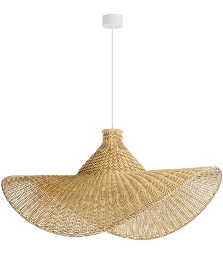 Cette lampe suspendue en rotin faite à la main est une pièce exquise qui dégage un charme bohème et une élégance naturelle. Avec un abat-jour de forme unique rappelant un chapeau ou une capeline d'un diamètre de 60 cm, cette lampe est une déclaration de style dans n'importe quel espace. Le rotin a été habilement tissé pour créer une structure légère et organique qui évoque la beauté de la nature. Chaque détail de ce chef-d'œuvre artisanal reflète l'habileté de l'artisan, de l'entrelacement des fibres à la forme élégante et fluide de l'abat-jour. La lumière douce qui émane de cette lampe enveloppe l'atmosphère d'une ambiance chaleureuse et sereine, transformant n'importe quelle pièce en un sanctuaire bohème plein de style et de chaleur. Câble non inclus, si vous souhaitez acheter un câble pour cette lampe, cliquez ici. ...