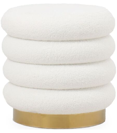 Pouf Rond Tapissé En Tissu Bouclé - Leonora Blanc