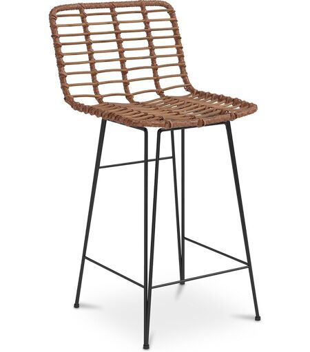 Tabouret De Bar Design Boho Bali En Osier Synthétique 65cm - Kimi Bois Naturel