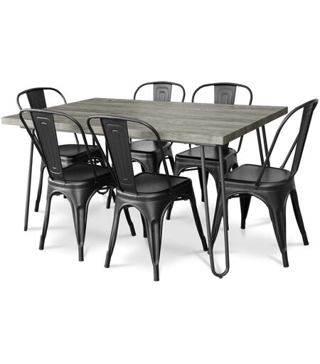 Privatefloor - Pack Table à manger - Design industriel 150cm + Pack de 6 chaises à manger - Design industriel - Hairpin Stylix Noir
