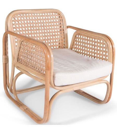 Fauteuil En Rotin Avec Accoudoirs, Design Boho Bali - Leta Blanc