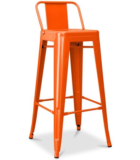 PRIVATEFLOOR Tabouret de bar avec dossier - Design industriel - 76cm - Nouvelle édition - Stylix Orange