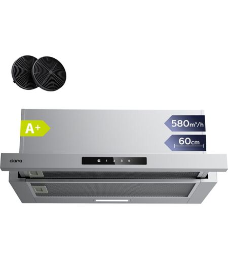 Hotte Tiroir 60cm 580m3/h Commande Tactile Recyclage ou Evacuation CD6909AS - Ciarra
