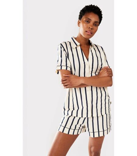 You can never go wrong with stripes! This classic navy and white style is perfect for keeping cool when you head to bed. These women's pyjamas include a short-sleeved shirt and matching shorts enhanced by chic navy piping. Machine washable. 100% Cotton. ...