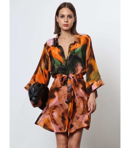 Religion Religion Orange Tunic Shirt Dress With Kimono Sleeves in Bright Floral Print Orange EU 34 (UK 6)