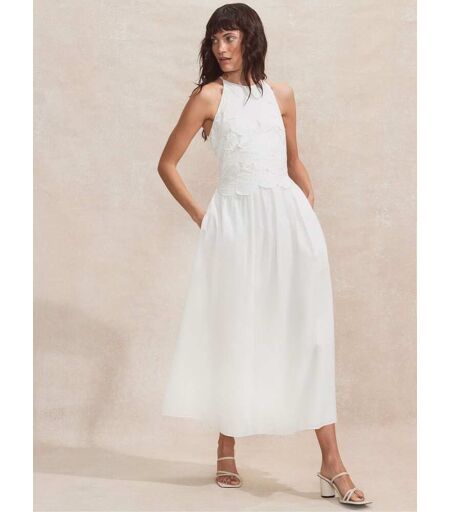 Ro & Zo Ro & Zo White 100% Cotton Marina Floral Cutwork Dress White 44