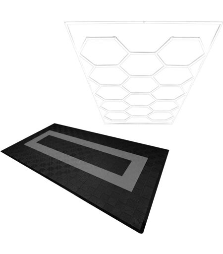 Transformez votre garage, atelier ou salle de sport en un espace pratique et visuellement impressionnant grâce à notre ensemble premium de carrelages de sol ventilés et système innovant d'éclairage LED hexagonal. Cette solution tout-en-un allie robustesse, style et fonctionnalité pour un espace dans lequel vous adorerez travailler ou que vous serez fier de montrer. Les carrelages de sol ventilé sont fabriqués avec expertise en polypropylène 100 % pur, offrant une capacité de charge remarquable de 5 tonnes par carrelage. Idéales pour supporter des véhicules lourds, des machines et équipements, elles assurent une durabilité exceptionnelle même dans des environnements exigeants. Le matériel résistant aux intempéries supporte les variations de température et les conditions difficiles, garantissant des performances fiables pendant des années. Cet ensemble de 90 carreaux noirs et 30 gris imbriqués et 46 pièces de bordure constitue une solution complète de revêtement de sol, couvrant ...