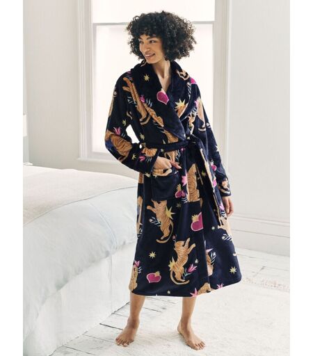Chelsea Peers Chelsea Peers Blue Fleece Enchanted Tiger Print Dressing Gown Blue 42