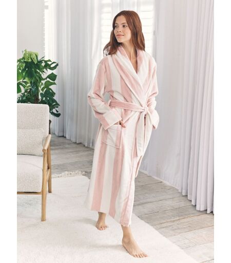 A classic made cosy. This shawl collar robe is cut in chunky taupe and cream stripes, bringing timeless style to your downtime. Crafted from soft fleece fabric, it s finished with a self-tie belt and patch pockets for practical ease. Perfect for layering over pyjamas on chilly mornings or wrapping up after long evenings in. Classic elegance, reimagined in fleece. Lavable en machine. 100% de polyester. ...
