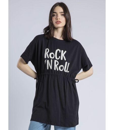 Turn heads with the Heart Dress. It's our bestselling shape with a new twist. This cotton jersey Tee dress in black features a crew neck, short sleeves, and a playful waist tunnel with tie and skull cord ends. The dress has our Rock N Roll graphic with beading for extra flair. Wear it as a dress or rock it over leggings for a fun and versatile style. The model wears a size 10. Please go down 1 size if you like it better less oversized. length: 86 cm. Machine washable. 100% Cotton. ...