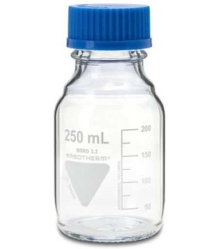 Rs Pro - Bouteilles de laboratoire bouchon Bleu , graduée, 250ml, en pp, à Col Large ( Prix pour Paquet de 10 )