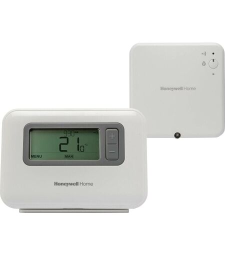 Description générale Ce thermostat Honeywell Home T3R est un modèle programmable moderne, conçu pour optimiser le confort de votre domicile. Grâce à son algorithme d'auto-apprentissage TPI, il permet un contrôle précis de la température et une gestion efficace du chauffage. Avec son design épuré et un écran rétroéclairé, il est facile à utiliser et à installer, fonctionnant sans fil pour une flexibilité maximale. Spécifications techniques Affichage : oui Alimentation : 2 piles AA (fournies), sur secteur Dimensions : 136 x 97 x 62 mm Poids : 585 g Plage de température : 5 °C à 35 °C Tension de fonctionnement : 3 V, 230 V Indice de protection : IP30 Fréquence radio : 868 MHz Autonomie des piles : jusqu'à 2 ans Compatibilité et accessoires Compatible avec les appareils marche/arrêt 24 - 230 V (chaudières à gaz, chaudières mixtes et pompes à chaleur) Fonctionne avec des vannes de régulation de zone Contenu de la livraison : thermostat sans fil, récepteur sans fil, 2 piles AA LR06, mode ...