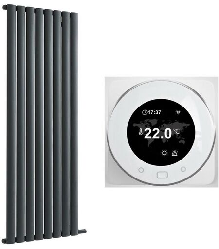 Hudson Reed - Vitality Ardus - Radiateur Électrique à Inertie Sèche avec Thermostat Wi-Fi - Anthracite - 178cm x 47.2cm