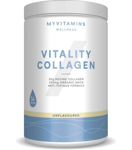 Découvrez Vitality Collagen, un mélange haut de gamme conçu pour vous aider à surmonter les moments les plus intenses du quotidien. Le collagène, la protéine la plus abondante de l’organisme, est un composant essentiel de la peau, des cheveux et des articulations. Mais à mesure que nous vieillissons, les niveaux naturels de collagène commencent à diminuer, c’est pourquoi il est essentiel d’en faire le plein régulièrement. Chaque portion contient 20 g de collagène d’origine bovine de haute qualité (types I et III), ainsi que 250 mg de maca bio et un mélange anti-fatigue de vitamines B12, C et d’acide pantothénique1. ...