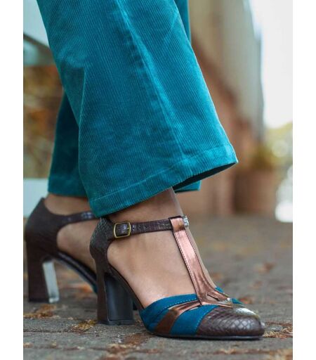 These vintage T-bar shoes are all about the gorgeous colours. Where brown crocodile pu meets blue and bronze detailing, one look has us dreaming of cosy autumn get-togethers. Perfect for drinks or dinner, just add the matching bag and you're guaranteed to make a lasting impression. Matière principale - 100% Autres fibres. Doublure - 100% Textile. Semelle - 100% Autres fibres. ...