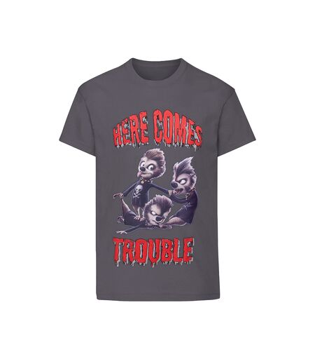 T-shirt enfant Hotel Transylvania Here Comes Trouble Gris Disponible en taille garcon. 3 / 4 ans,11 / 12 ans,7 / 8 ans,9 / 10 ans. . Enfant > Garcon > Vetements > T-shirt. ...