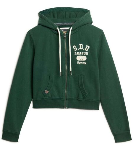 Superdry Superdry Enamel Green 100% Cotton Athletic Relaxed Crop Zip Hoodie