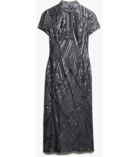Superdry Superdry Grey Mandarin Sequin Midi Dress Grey 36
