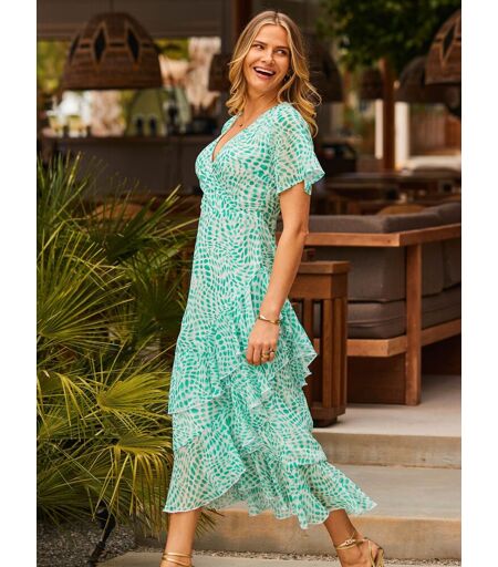 Sosandar Sosandar Petites tailles Abstract Imprimé Layered Hem Angel Sleeve Robe longue Vert EU 46 (UK 18)