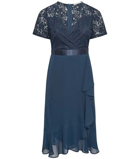 Yours Curve Yours Curve Robe Mi-long Volants enveloppée de dentelle Bleu EU 44 (UK 16)