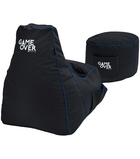 Game Over - Pouf de jeu avec repose-pieds, pouf d'intérieur et repose-pieds, pouf résistant à l'eau pour adultes avec poches latérales - Éclair