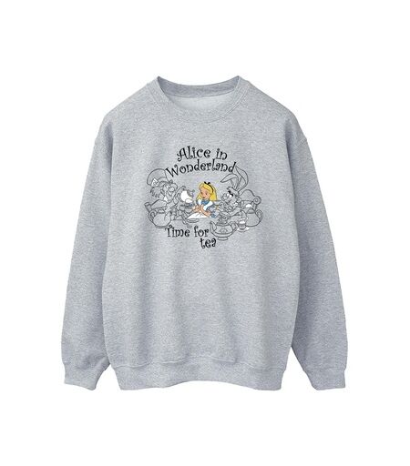 Sweat-shirt Disney Alice In Wonderland Time For Tea Gris