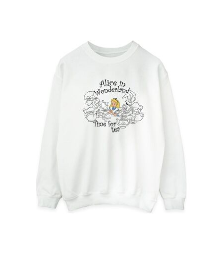 Sweat-shirt Disney Alice In Wonderland Time For Tea Blanc