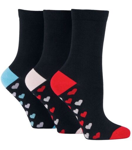 Wild Feet Wild Feet Black Supersoft Crew Socks With Fun Heart Footbed 3 Pack