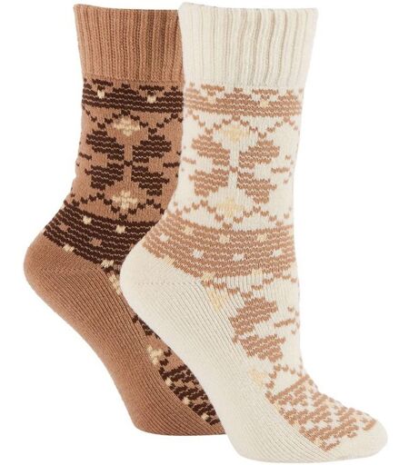 Wild Feet Wild Feet Cream Chunky Fairisle Thermal Socks 2 Pack