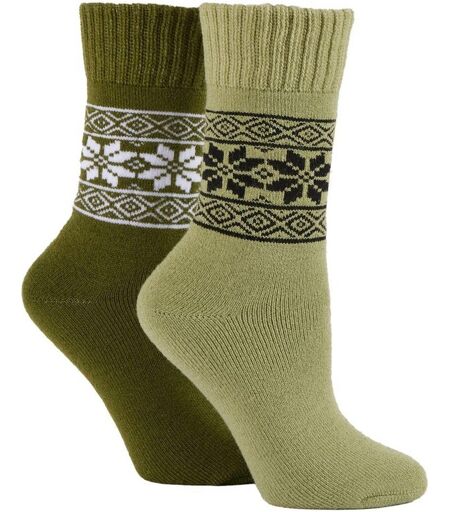 Wild Feet Wild Feet Green Chunky Fairisle Thermal Socks 2 Pack