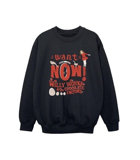 Sweat-shirt enfant Willy Wonka Verruca Salt I Want It Now Noir