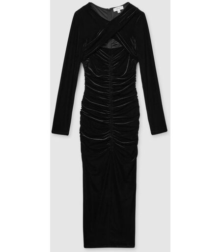 Reiss Reiss Black Sia Velvet Ruched Twist-Front Midi Dress Black EU 32 (UK 4)