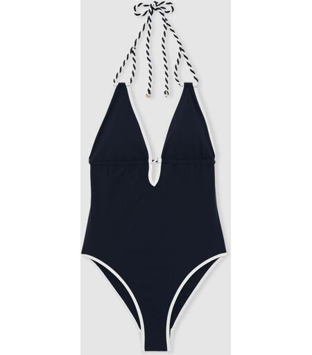 The Piper swimsuit brings a nautical twist to a classic silhouette, defined by a plunging neckline and contrasting trim. Twisted self-ties at the neck and back ensure an adjustable fit, while branded ring hardware lends a refined finish. Plunging neckline. Removable padding. Twisted ties. Self-tie halterneck and back. Branded ring hardware. Lavage à la main uniquement. 73 % nylon, 27 % élasthanne. ...