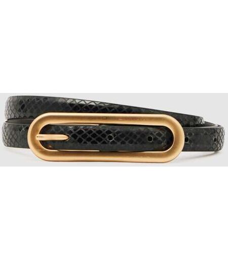 Reiss Reiss Black Snakeskin Chaya Thin Leather Elongated Buckle Belt