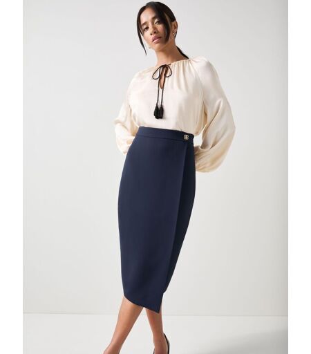 The Audrey Petite asymmetric slim pencil skirt in spring navy features a front wrap design with a tailored fit. It's perfect for creating a stylish workwear look that embodies modern fashion, transitioning easily from professional to casual occasions. Dry clean only. 100% Polyester. ...