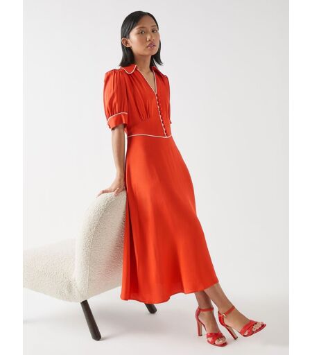 LK Bennett LK Bennett Red Petite Lou Aurora Viscose Contrast Trim Satin Crepe Dress Red 36