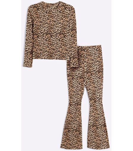 River Island River Island Brown Leopard Print Long Sleeve T-Shirt and Trousers Set Brown EU 38 (UK 10)