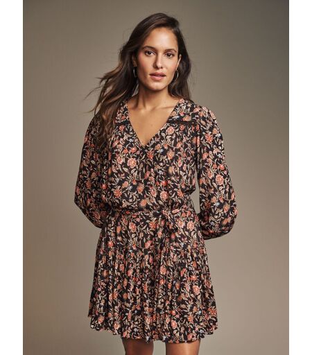 Laura Ashley Laura Ashley Chocolate Brown Derwent Floral Tie Waist Mini Dress Chocolate Brown EU 34 (UK 6)