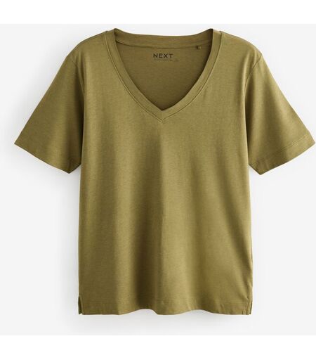 Next Olive Green Cotton Modal Slouch V-Neck T-Shirt