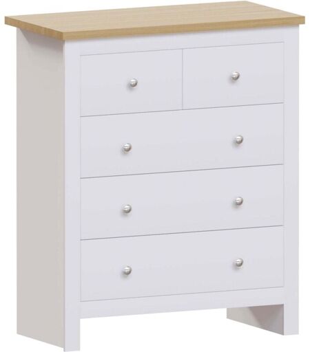 HOME DISCOUNT Arlington Commode 5 tiroirs pour chambre meuble de rangement élégant et durable H 95 x L 79 x P 39,5 cm, Blanc