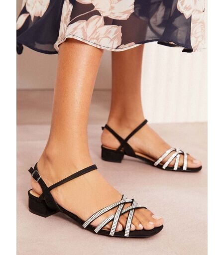 Stay both elegant and comfortable with our diamante detailed low heel sandal. The low heel ensuring you can wear them all day long, and the diamantes adding a touch of glamour to your outfit. Featuring: Buckle fastening. Low heel. Faux suede material. Gorgeous diamante details. Tige - textile, doublure et première de propreté - Textile, autres matériaux, semelle - Autres matière, textile, autres matières. ...