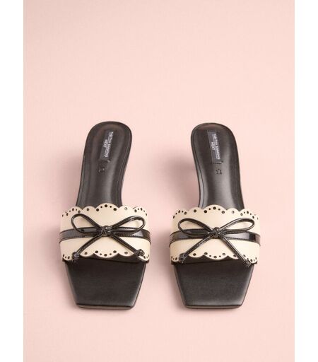 Next Black/White Tabitha Simmons x Next Minnie Leather Square Toe Lazer Cut Bow Mule Kitens Shoes