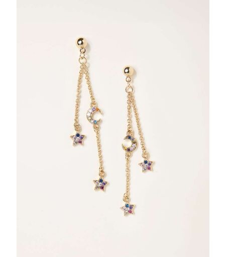 Fat Face FatFace Gold Tone Star and Moon Chain Earrings