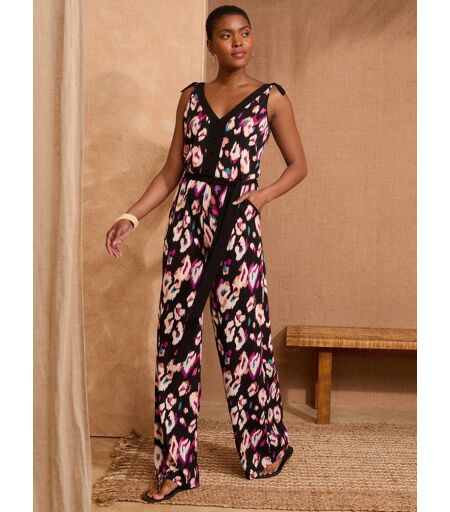 Love & Roses Love & Roses Black Animal Print Jersey Belted Coverup