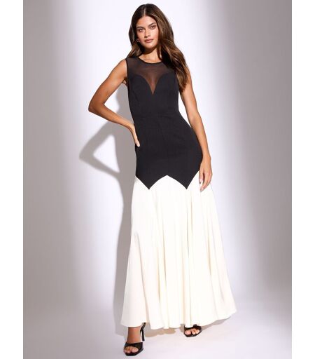 Lipsy Lipsy Black Premium Sweetheart Mesh Neck Satin Hem Maxi Dress Black 38