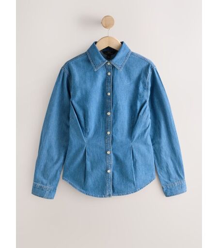 Next Mid Blue Fuller Bust Cinch Waist Fitted Denim Shirt Mid Blue 52