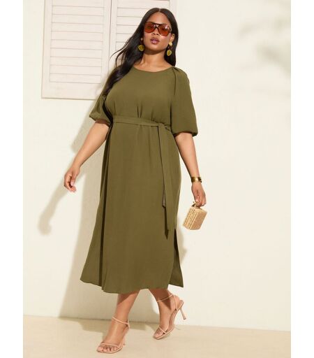 Friends Like These Robe mi-longue Friends Like These à manches bouffantes nouée à la taille Vert kaki 56