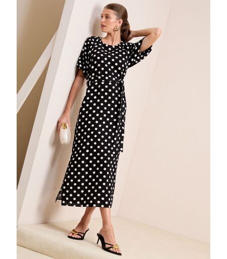 Friends Like These Robe mi-longue Friends Like These à manches bouffantes nouée à la taille Noir/Blanc 50