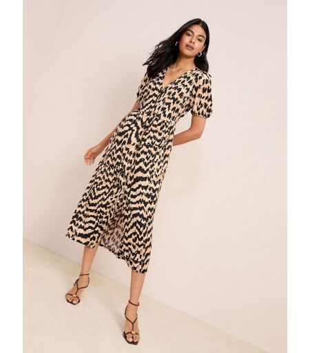 Friends Like These Friends Like These Robe mi-longue boutonnée en jersey texturé à manches bouffantes et col en V Animal neutre 38