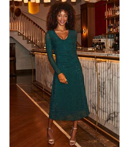 Sosandar Sosandar Green Embellished Fit & Flare Midi Dress Green 44